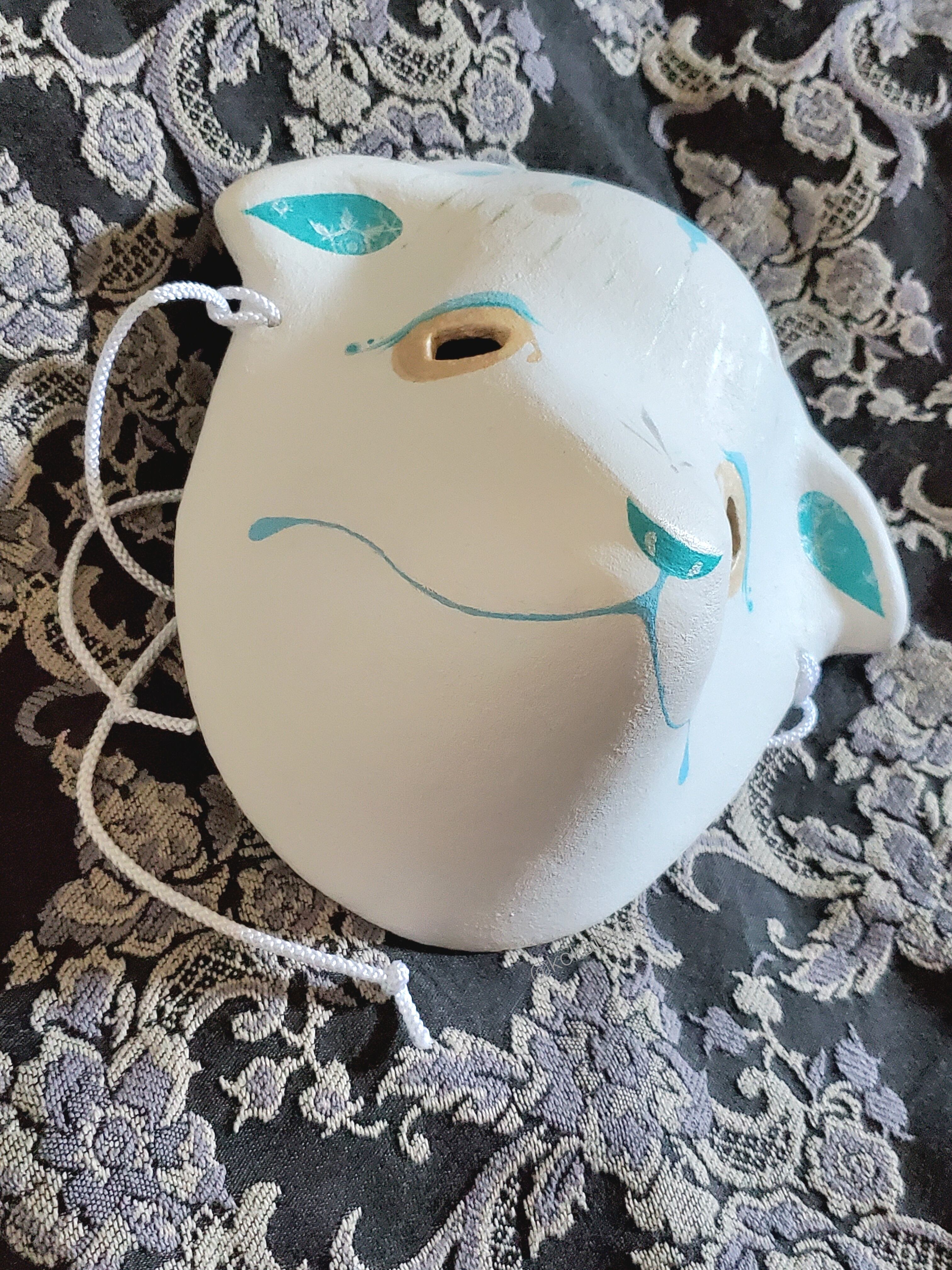 寒色でまとめているので一見クールに見えますが羊面の優しい表情と相まって不思議な魅力があります。